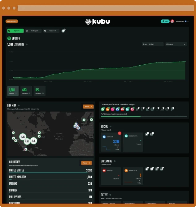 Free artist insights with data collated from streaming, playlisting and social media to help you understand your fanbase.